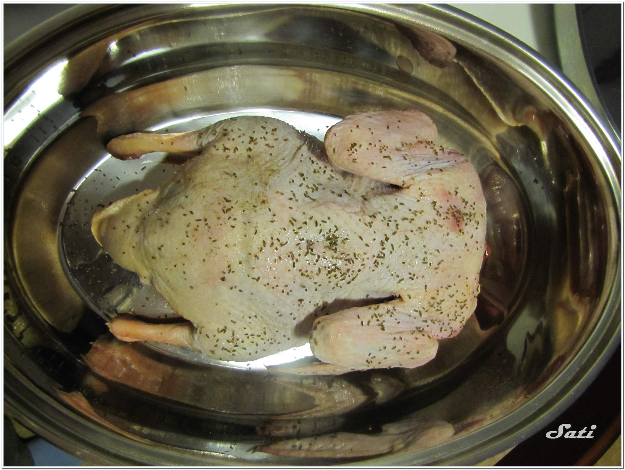Kachnu pečeme jen při zvláštních příležitostech, většinou na Štěpána. Dlouho jsem toužila po pořádném pekáči na pečení kachny a před dvěmi lety se na mě usmálo štěstí v Tescu - pekáč byl slevněný a Lišák byl ochoten pustit chlup :-) , takže nic nebránilo tomu odnést si pekáč domů.